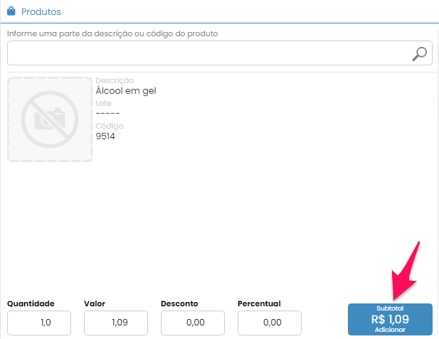 Ao encontrar o produto procurado, confira a quantidade do item e clique no botão Adicionar.
