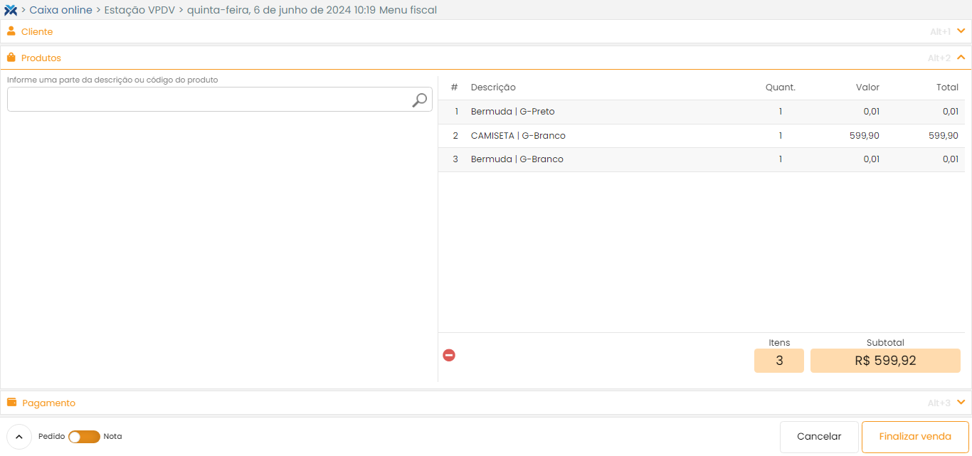 Os itens do(s) pedido(s) serão adicionados na tela de venda, onde você poderá incluir ou remover produtos.