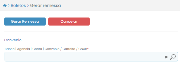 Agora basta selecionar a opção desejada no campo Banco / Agência / Conta / Convênio / Carteira / CNAB e pressionar o botão Gerar Remessa. Pronto! O processo está concluído.