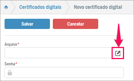 Quando a validade do certificado digital estiver chegando ao fim pressione o botão Novo. Será aberta a seguinte tela: