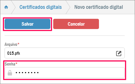 O sistema notificará que o certificado foi importado. Após a notificação, ao acessar a listagem de certificados, você verá o novo com as respectivas datas de início e fim de validade:
