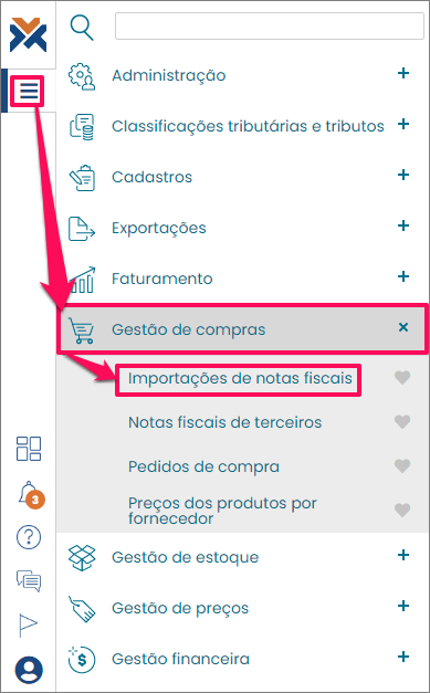 Para acessar a funcionalidade acesse: Menu > Gestão de Compras > Notas Fiscais de Terceiros:
