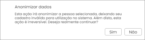 Clicando em Anonimizar LGPD, o sistema fará o seguinte questionamento.