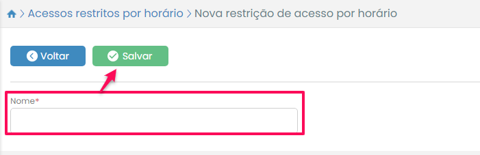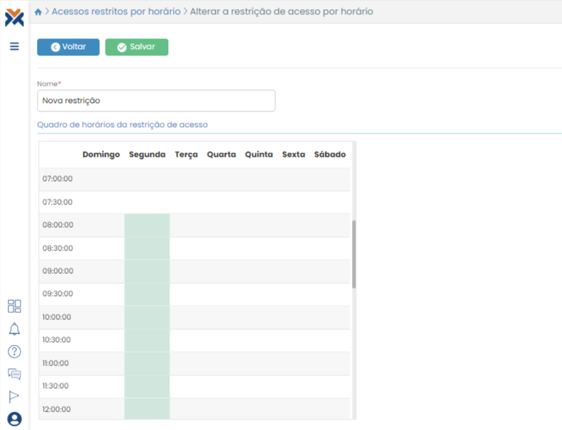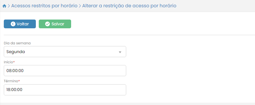 Após terminar de preencher a restrição de horário de acesso para o dia determinado, clique no botão Salvar.