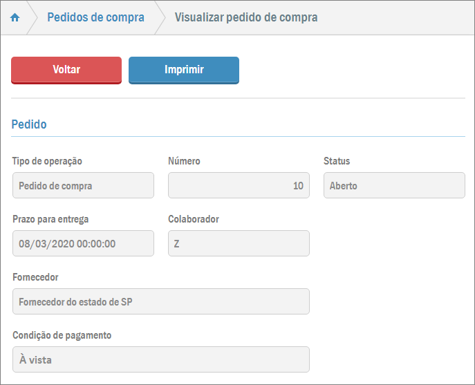 Visualizar um pedido de compra já criado é muito rápido no VarejoCloud!